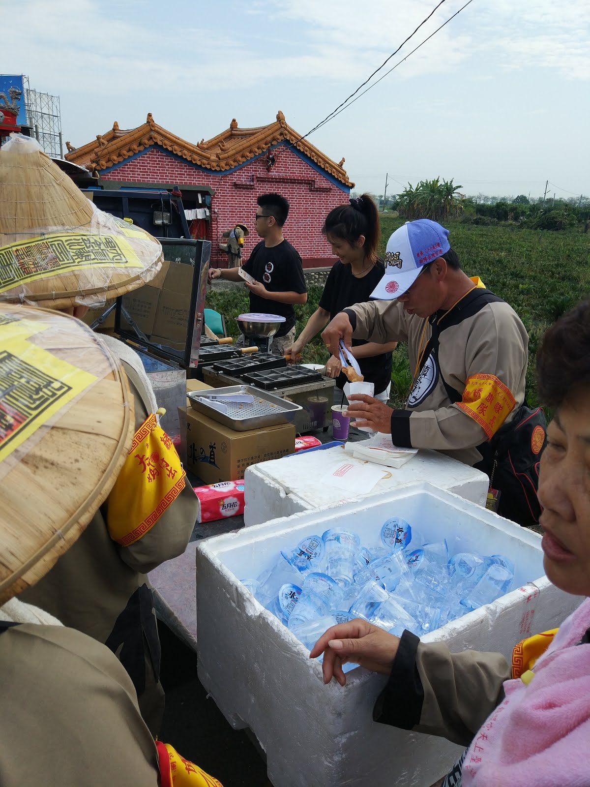 虎尾帥興宮還有準備紅地毯給要倰轎腳的人,我覺得這間宮廟真的很貼心,在去程時即使不在遶境路線上,但他們知道還是會有香客經過,所以還是會準備東西招待香客,今天更不用說了
