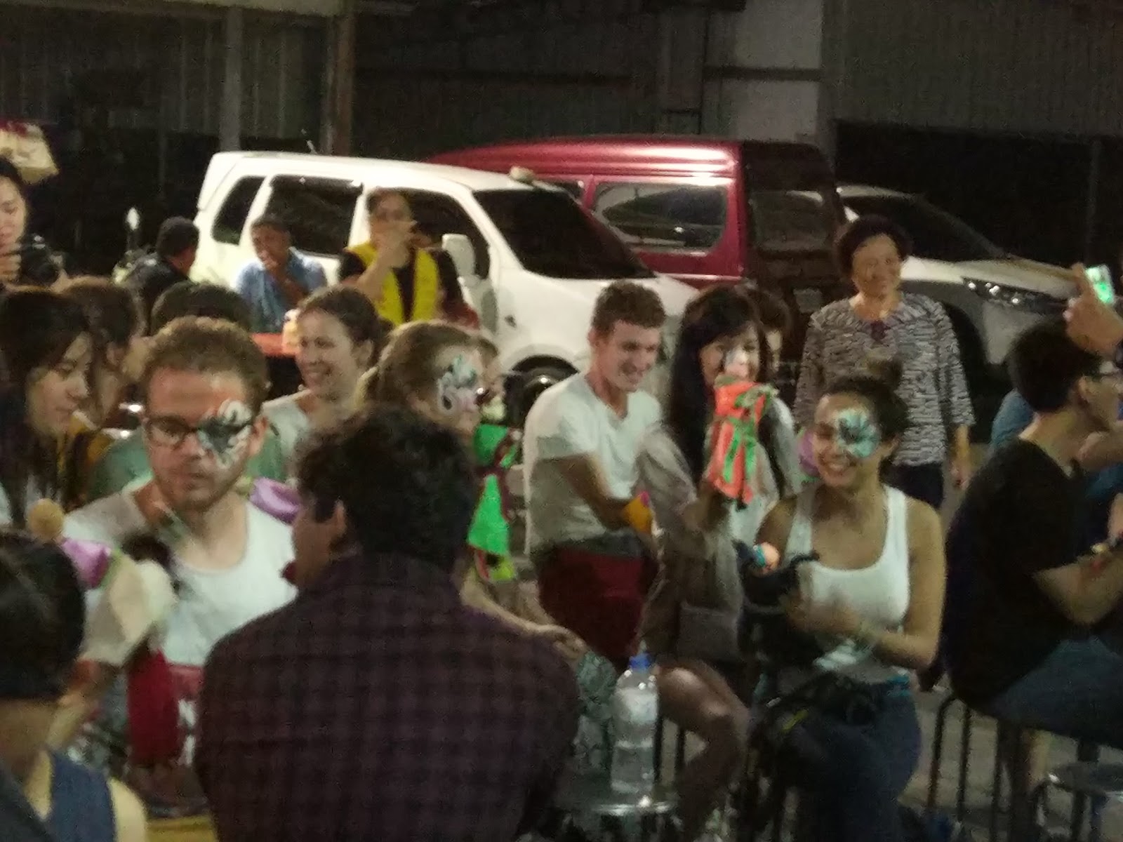 晚上有靜宜大學的學生來教外國人布袋戲,認識台灣文化